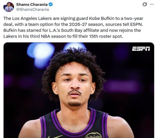 Shams率先曝出消息,指出湖人與巴夫金簽下兩年合同,第二年為球隊(duì)選項(xiàng)。