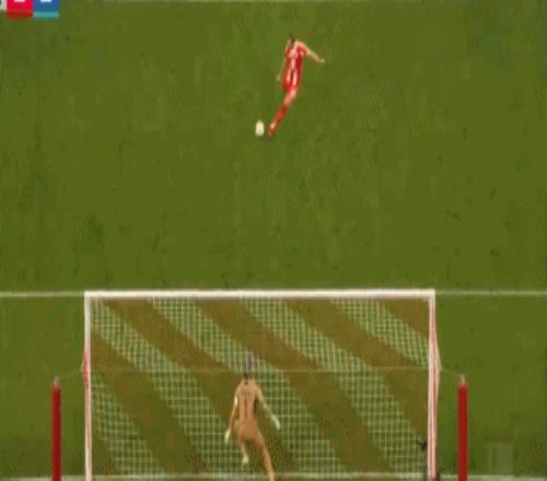 比賽的第17分鐘,迪亞斯禁區(qū)內(nèi)被阿克波古馬拉倒,主裁判判罰點球并且向阿克波古馬出示紅牌。凱恩主罰點球勁射破門,1比0!
