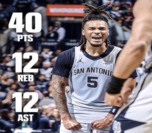 ——馬刺隊史第一個單場40分+10籃板+10助攻三雙的球員