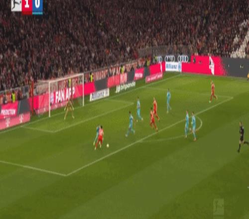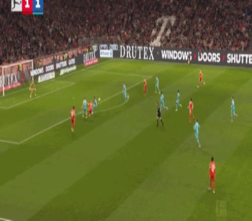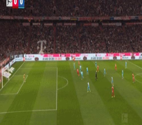 第20分鐘,阿克波古馬送紅點套餐,凱恩命中,拜仁1-0霍芬海姆