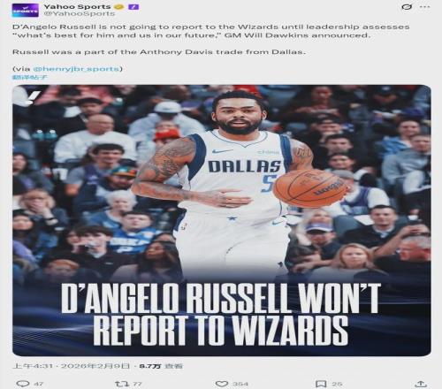 今年2月5日,奇才送出米德?tīng)栴D、AJ-約翰遜、巴格利、布蘭納姆、2個(gè)首輪、3個(gè)次輪,9換4從獨(dú)行俠交易得到濃眉、拉塞爾、哈迪、??怂_姆。當(dāng)時(shí)美國(guó)媒體調(diào)侃:無(wú)論濃眉去哪里(湖人、獨(dú)行俠、奇才),都無(wú)法擺脫拉塞爾。