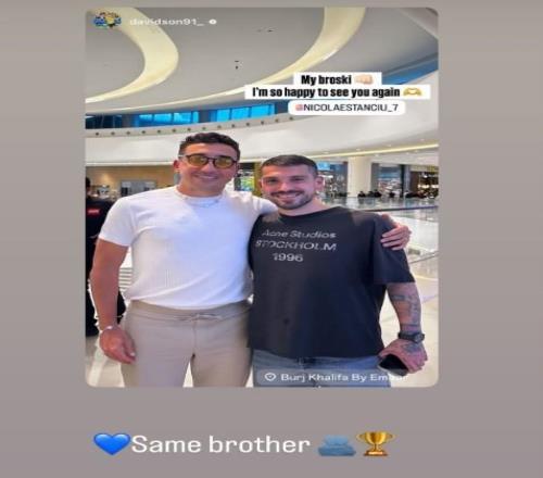 正在迪拜冬訓(xùn)的大連英博外援斯坦丘曬與原武漢三鎮(zhèn)隊(duì)友戴維森、阿齊茲合照。