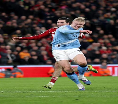 但曼城展現(xiàn)了冠軍球隊(duì)的韌性,第84分鐘,哈蘭德頭球擺渡,貝爾納多·席爾瓦鏟射破門,將比分扳為1比1,高潮在補(bǔ)時(shí)階段到來,曼城球員努內(nèi)斯在禁區(qū)內(nèi)被利物浦門將阿利松放倒,裁判判罰點(diǎn)球,哈蘭德主罰命中,完成絕殺,并脫衣慶祝領(lǐng)到黃牌。