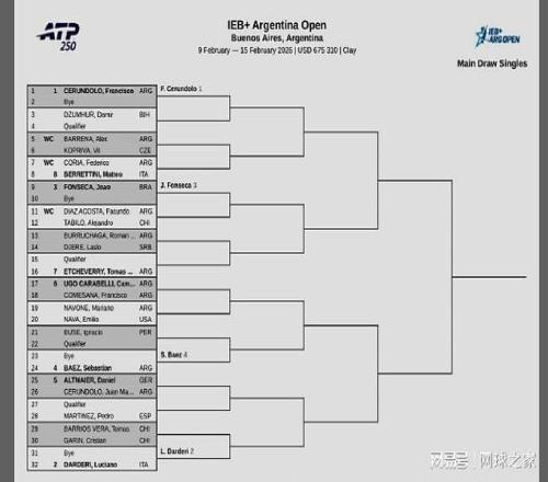 ATP250阿根廷布宜諾斯艾利斯站:本土名將F-塞倫多羅、意大利人達爾德里位列前兩號種子,衛(wèi)冕冠軍是巴西新星豐塞卡。