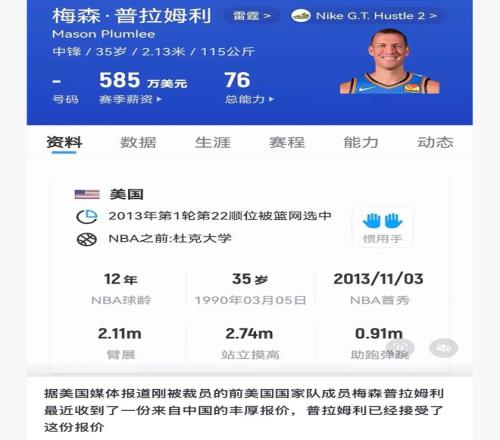 今年35歲的普拉姆利,曾是夢(mèng)之隊(duì)的主力中鋒,他擁有非常高的籃球智商,擁有非常出色的策應(yīng)能力,擁有非常不錯(cuò)的防守能力,擁有非常不錯(cuò)的護(hù)框能力,當(dāng)然了,他還擁有非常不錯(cuò)的終結(jié)能力。