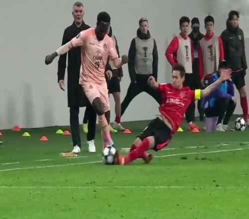 第54分鐘,頗具威脅!胡荷韜凌空遠(yuǎn)射打偏了。第62分鐘,此前韋世豪放鏟鏟到球,主裁判向其出示黃牌!