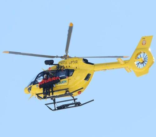 2月8日,一架直升機(jī)接走受傷的美國(guó)隊(duì)選手沃恩。新華社記者 張晨霖 攝