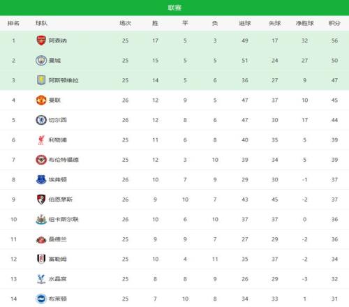 隨著切爾西22爆冷+曼聯(lián)11絕平!英超最新積分榜:紐卡21熱刺