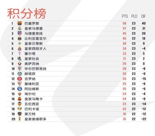 西甲第23輪綜述:又成二人轉巴薩1分領先皇馬,馬競輸球掉隊