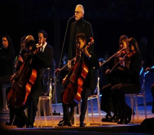 意大利盲人歌唱家波切利帶來(lái)歌劇《圖蘭朵》中最著名的詠嘆調(diào)《今夜無(wú)人入睡》,全場(chǎng)一同唱響,震撼人心。