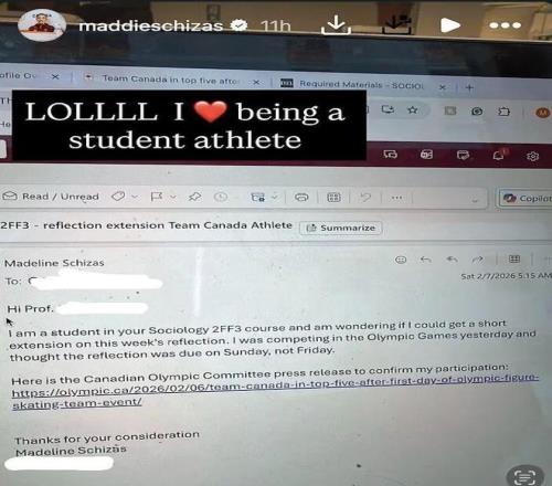 唯恐教授不信,她還貼心地附上了加拿大奧林匹克委員會的一個新聞鏈接,證實“她確實在參賽”。