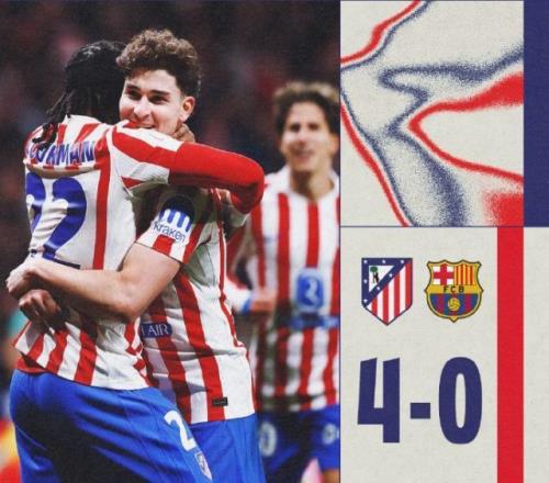 西班牙國(guó)王杯半決賽首回合,馬競(jìng)主場(chǎng)4比0大勝巴薩!埃里克·加西亞烏龍+紅牌,格列茲曼破門,冬窗新援盧克曼和阿爾瓦雷斯均傳射建功;下半場(chǎng)巴薩進(jìn)球被VAR吹掉,最終馬競(jìng)4比0狂勝。次回合將在北京時(shí)間3月4日凌晨移師諾坎普進(jìn)行。