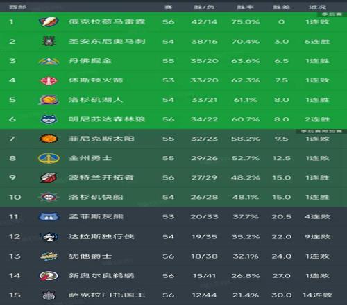 北京時間2月13日,今日的NBA常規(guī)賽結束了所有比賽,我們看看西部的最新排名!