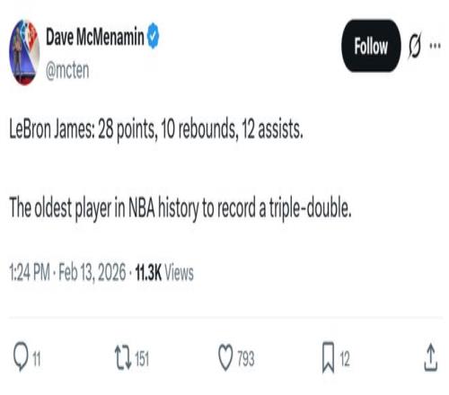41歲詹姆斯無(wú)疑是本場(chǎng)湖人隊(duì)拿下勝利的最大功臣,全場(chǎng)出戰(zhàn)35分鐘,20中10,三分7中2,拿下28分10板12助1蓋帽三雙數(shù)據(jù),一口氣創(chuàng)造數(shù)項(xiàng)NBA歷史之最。