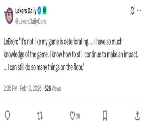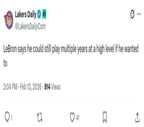 最后詹姆斯坦言只要自己愿意,仍能以高水平狀態(tài)繼續(xù)征戰(zhàn)多個(gè)賽季。