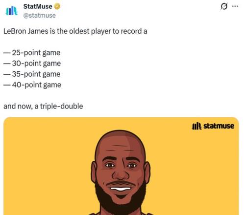 同時(shí)詹姆斯也是NBA歷史上單場(chǎng)砍下25分、30分、35分、40分的最老球員紀(jì)錄保持者,本場(chǎng)又達(dá)成單場(chǎng)三雙最老球員成就,用行動(dòng)完美詮釋何為“最長(zhǎng)的河”。