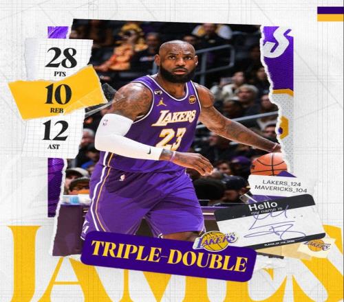 北京時間2月13日,NBA常規(guī)賽,湖人124-104大勝獨行俠,此役后湖人重返西部第五。這場比賽41歲的勒布朗從開場就發(fā)揮出色,首節(jié)就拿到14分6助攻的全面數(shù)據(jù),全場比賽他鏖戰(zhàn)35分鐘拿到28+12+10的三雙數(shù)據(jù)。