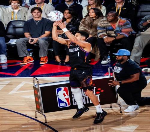 利拉德第二個(gè)出場(chǎng),前16個(gè)球命中了14個(gè),包括一個(gè)4分的花球。后面準(zhǔn)度有所下滑,最終仍有29分。布克一上來(lái)也不遑多讓?zhuān)B中九個(gè)球,后面也投進(jìn)了一顆四分球。還剩三個(gè)花球的時(shí)候,布克拿到27分,剩下三個(gè)花球投進(jìn)一顆追平利拉德,投進(jìn)兩顆就拿到冠軍。然后布克三個(gè)花球全部投丟,成為三分大賽歷史非常戲劇性的一幕。