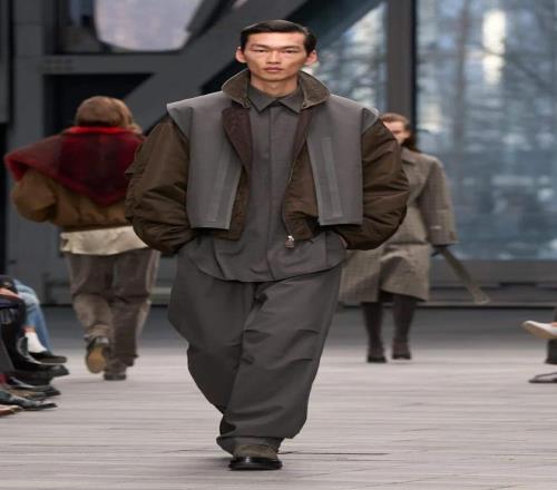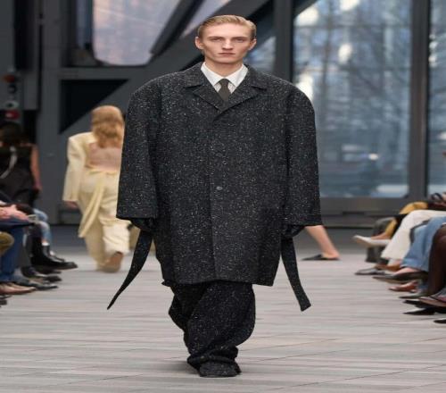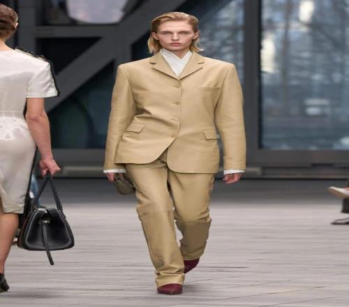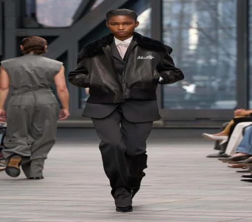本季的設(shè)計中,Leoni 借鑒了品牌 20 世紀 70 年代 的經(jīng)典元素,將現(xiàn)代的精致剪裁與極簡幾何相結(jié)合。性感的西裝凸顯女性身材的曲線,放大版的毛領(lǐng)則突顯奢華感。而她對于「減法美學」的推崇,使得整個系列的輪廓更加銳利、簡潔。1976 年檔案中的牛仔元素,被重新帶回 Calvin Klein 的 T 臺,長字母刺繡的飛行員夾克引人注目,呼應了 Brooke Shields 代言的爭議牛仔廣告。