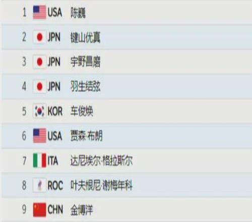 那屆奧運(yùn)會(huì)花滑男單比賽最終的結(jié)果如下,冠軍由美國隊(duì)的陳巍獲得,我國選手金博洋排名第九,而羽生結(jié)弦只獲得了第四,排在他的兩個(gè)日本隊(duì)友之后。