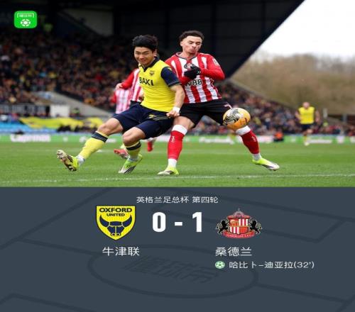 北京時間2月15日英格蘭足總杯第四輪,牛津聯(lián)對陣桑德蘭。桑德蘭哈比卜-迪亞拉點射破門。最終桑德蘭客場1-0擊敗牛津聯(lián)晉級。