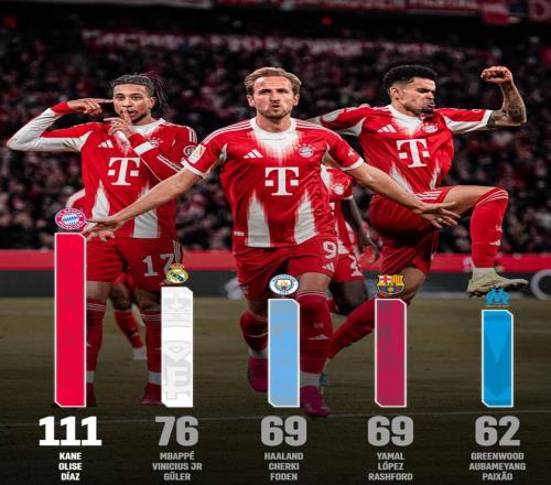 本賽季至今,哈里-凱恩、奧利塞以及路易斯-迪亞斯合計(jì)直接參與的進(jìn)球數(shù)已經(jīng)高達(dá)111球,同期這一數(shù)據(jù)位列全歐第一,比排名第二的皇馬三叉戟姆巴佩、維尼修斯和居萊爾多出了35球。