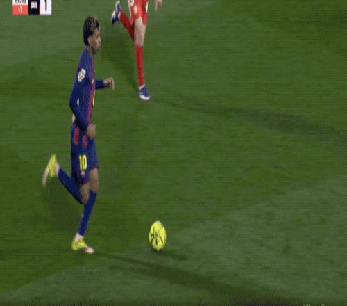 之后的25分鐘,巴薩占據(jù)了場面上的絕對主動(dòng)。第43分鐘,拉菲尼亞的射門打穿防守球員的小門,可惜皮球擊中立柱。