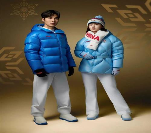 服裝的主色調(diào)是冰穹藍(lán)與雪山白,圍巾和帽子上印著CHINA的英文,辨識(shí)度極高。