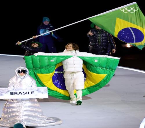 結(jié)果當(dāng)領(lǐng)頭的滑雪運(yùn)動(dòng)員Lucas張開雙臂,翻開白色羽絨服反面的巴西國(guó)旗時(shí),全場(chǎng)直接炸了。