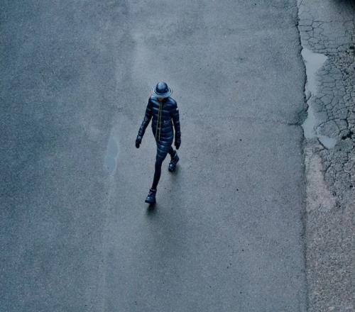 這套亮黑色羽絨服也是完全不走尋常路,沒有一般羽絨服的臃腫笨重,裁剪和質(zhì)感都很高級(jí)。