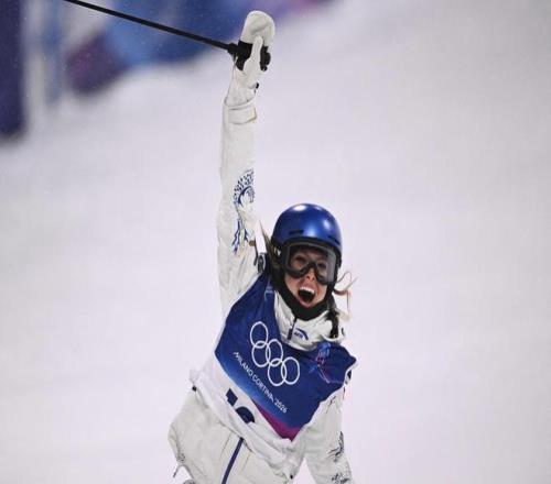 谷愛凌完成比賽后慶祝。
