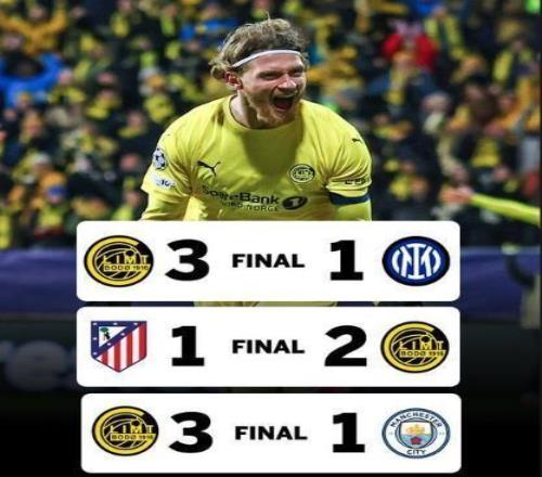 這是挪威俱樂部在歐冠歷史第2次擊敗意甲球隊(duì),上一次還要追溯到1996年羅森博格擊敗AC米蘭。憑借這場勝利,博德閃耀解鎖了一項(xiàng)極為了不起的成就,成為歐冠歷史上第4支達(dá)成三連勝的非五大聯(lián)賽球隊(duì)。此前做到這一點(diǎn)的三支球隊(duì),帕納辛納科斯、本菲卡、圣彼得堡澤尼特,無一不是各自時代的梟雄。更恐怖的是,閃耀哥的三連勝含金量極高:客場2-1勝馬競、主場3-1勝曼城、主場3-1勝國米,刀下不斬?zé)o名之輩。