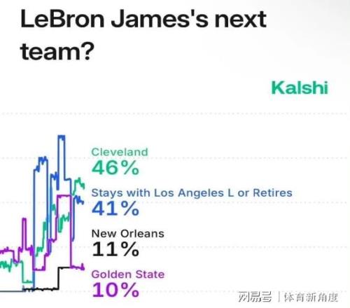 本月月初,美國(guó)那家頗具權(quán)威性的市場(chǎng)預(yù)測(cè)平臺(tái)Kalshi,對(duì)詹姆斯下賽季潛在下家的概率進(jìn)行了更新。令人矚目的是,騎士隊(duì)在這份榜單上如火箭般躥升,一舉躍至榜首位置。