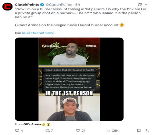 阿里納斯也談到了‘疑似杜蘭特小號(hào)風(fēng)波’,他說道:太扯淡了,我用小號(hào)的話還用第一人稱?那我為什么還要切換小號(hào)呢?很明顯說那個(gè)賬號(hào)是杜蘭特小號(hào)的家伙就是幕后黑手。