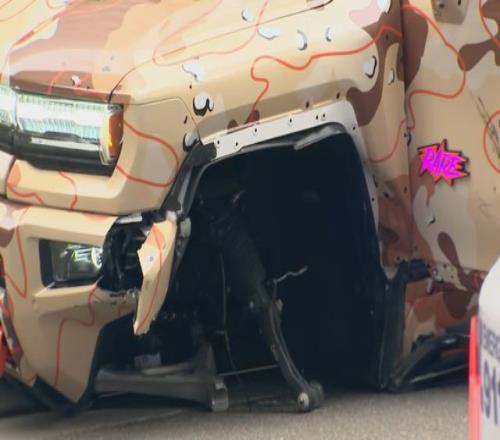 當?shù)孛襟w報道,事故發(fā)生在Trade街Tryon街交叉口,一輛轎車受損停在路口中央。鮑爾那輛定制版的2022款GMC悍停在路邊,前輪已經不見了。 目擊者表示:一輛灰色起亞轎車沿Trade街向東行駛,鮑爾駕駛悍馬沿Trade街向西行駛,在試圖左轉駛入單向通行的Tryon 街時,兩車發(fā)生碰撞。