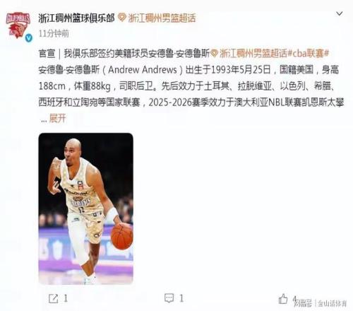 值得一提的是,在與約克解約后,浙江稠州金租男籃同時宣布,俱樂部已正式簽約美籍后衛(wèi)安德魯·安德魯斯,這位32歲老將,將代表浙江男籃出戰(zhàn)2025-2026賽季剩余比賽。作為一名雙能衛(wèi),安德魯斯在效力澳大利亞NBL期間,場均貢獻14.5分、2.4個籃板和5.8次助攻,其助攻數(shù)高居聯(lián)盟第五位。從打法和個人特點來看,安德魯斯既具備良好的人球結(jié)合突破能力,也有很強的得分能力,同時擁又具備組織串聯(lián)能力。屬于能突能投能傳的全能型小外援。