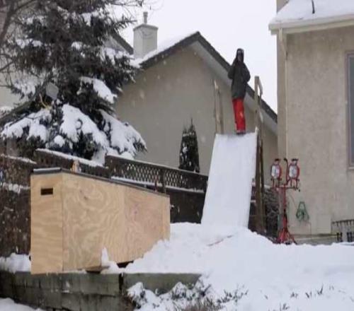 麥克莫里斯父親在自家后院搭了個簡易裝置,滿足兒子們想要練習(xí)滑雪的愿望。