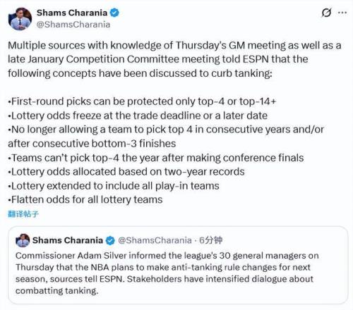 多位了解總經(jīng)理會議及1月末競爭委員會會議的消息人士向ESPN表示,目前討論的反擺爛方案如下——