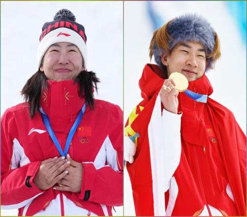 徐夢桃(左)和蘇翊鳴。新華社記者 胡超、王鵬 攝