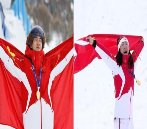 35歲的徐夢桃和22歲的蘇翊鳴,分別在自由式滑雪女子空中技巧和單板滑雪男子坡面障礙技巧項(xiàng)目中站上最高領(lǐng)獎臺。影像定格這一歷史性瞬間,連接起兩個時代,在利維尼奧合成一個故事。