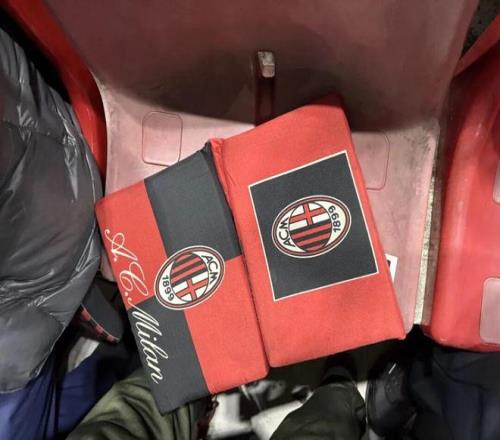 我左右兩邊的球迷體型都偏大,我被夾在中間,與他們一起組成了一個(gè)“三明治”。這導(dǎo)致我拍攝照片和視頻都變得十足費(fèi)勁,但也很溫暖。被兩個(gè)壯漢固定在塑料座椅上,屁股需要經(jīng)受比較大的考驗(yàn)。我旁邊的那位球迷就比較有經(jīng)驗(yàn)了,專門(mén)帶了一個(gè)帶有AC米蘭隊(duì)徽的座墊。
