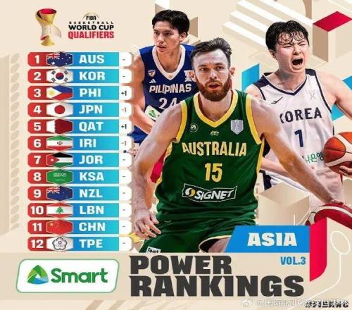 FIBA官方更新世預(yù)賽第二窗口期實(shí)力榜,其中,澳大利亞、韓國和菲律賓位居前三,中國男籃位居第11位,中國男籃即將對陣的日本排名第四。