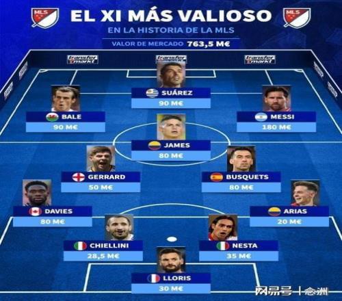 德轉(zhuǎn)列美職聯(lián)球員、以及曾在美職聯(lián)效力的球員身價(jià)最貴陣,梅西1.8億歐領(lǐng)銜,蘇亞雷斯、貝爾、杰拉德、J羅、布斯克茨在列,中衛(wèi)組合則是基耶利尼+內(nèi)斯塔。