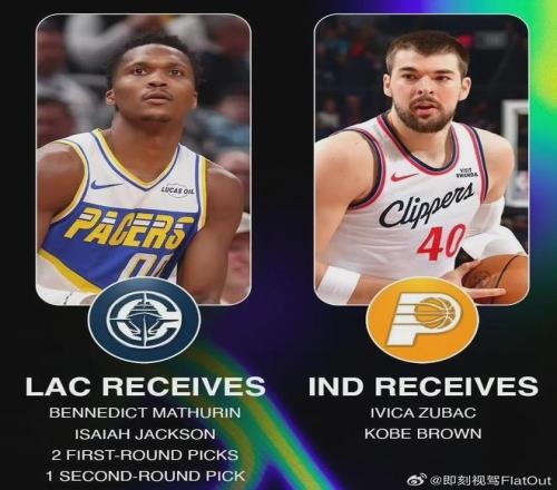 今年交易截止日前,快船送出祖巴茨+科比-布朗,從步行者換來的馬瑟林+以賽亞-杰克遜+2個首輪簽+1個次輪簽。