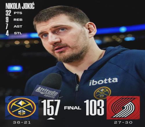 開拓者慘敗54分是隊史第六大分差,隊史最大輸球分差是65分(1997-98賽季59-124不敵步行者)。掘金狂勝54分,創(chuàng)造隊史最大贏球分差,此前紀(jì)錄是52分。單場157分不僅是本賽季聯(lián)盟最高分,也是掘金隊史客場得分紀(jì)錄!