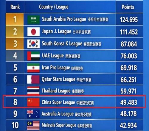 而更尷尬的是身后的澳超聯(lián)賽,也已經(jīng)逼近中超。目前僅僅比中超聯(lián)賽少1.3分。要知道,本賽季的亞冠精英賽僅僅是聯(lián)賽階段結束了,接下來還有淘汰賽,而代表澳超的墨爾本城有望繼續(xù)自己高光的表現(xiàn)。