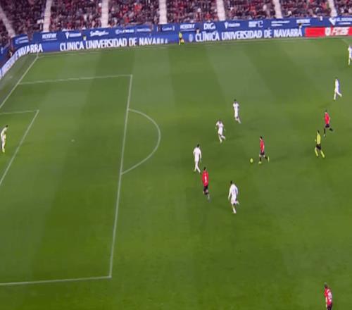 反觀奧薩蘇納卻踢的積極主動,并且長時間將皇馬壓制在本方禁區(qū)防守。兩個邊路的不斷傳中,給布季米爾制造出了大量的機(jī)會,如果不是庫爾圖瓦足夠神勇,奧薩蘇納至少已經(jīng)打進(jìn)了兩球。而在防守端對維尼修斯和姆巴佩的盯防也非常有章法,基本沒有給對手太多的機(jī)會。