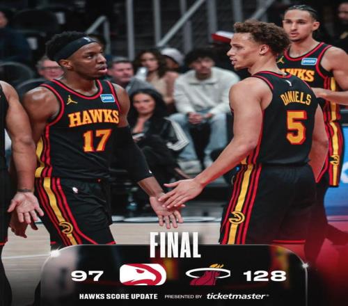 上一場(chǎng)常規(guī)賽,老鷹主場(chǎng)97-128慘敗熱火。